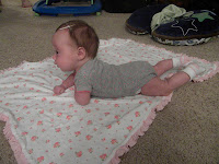 I know everybody feels this way about their kids, but I really do feel like the luckiest mom in the world! She’s a really easy baby which I’m grateful for. She’s perfectly content to lie on the floor and kick her legs while I get other things done. She’s mellow and hardly ever cries. There are times when I’ll pick her up to feed her and realize I need to get something and set her down for a second and she’ll cry in a tantrum sort of way because she thinks she’s so hungry she could die. I secretly love it when she does that because it makes me feel needed. She fusses sometimes, but it’s rare that she full on cries. She’s such a good baby and I’m so glad she’s done so well since the day she was born. If being sick for 9 months straight (or in Shasta’s case 7 months straight) means I get to have a good, easy baby I think I’ll take it. Nine months of hard pregnancy sounds much easier than a life time of rotten kids! :)